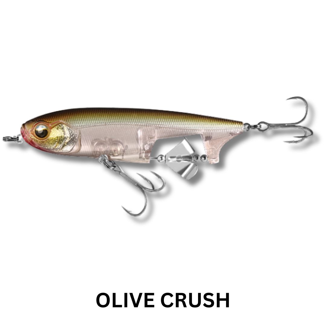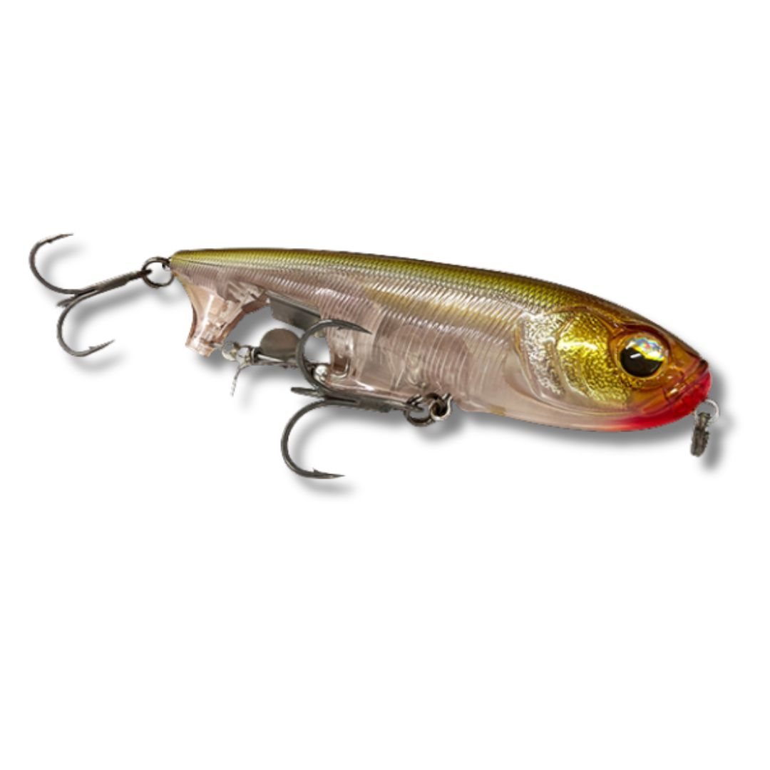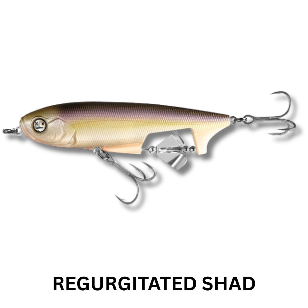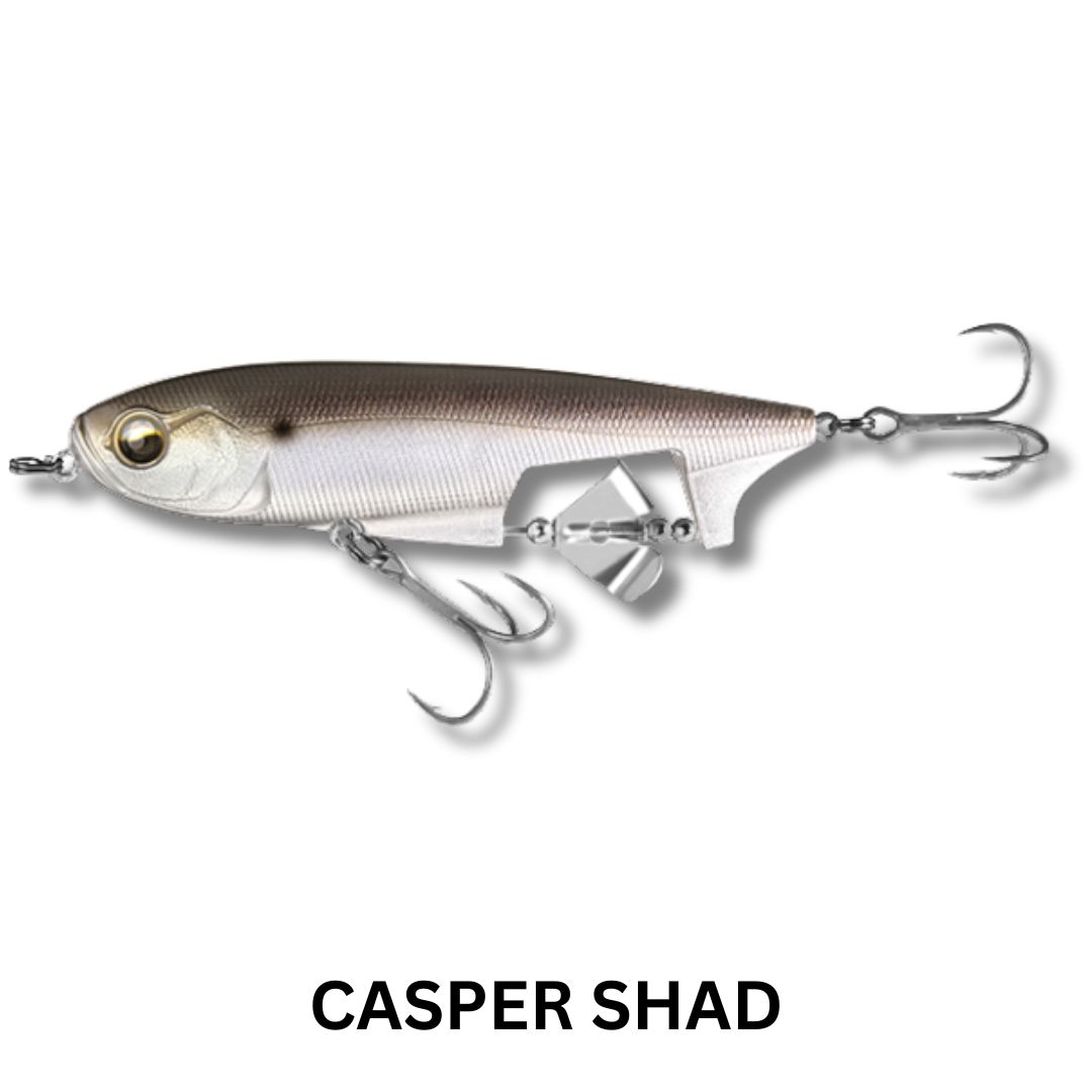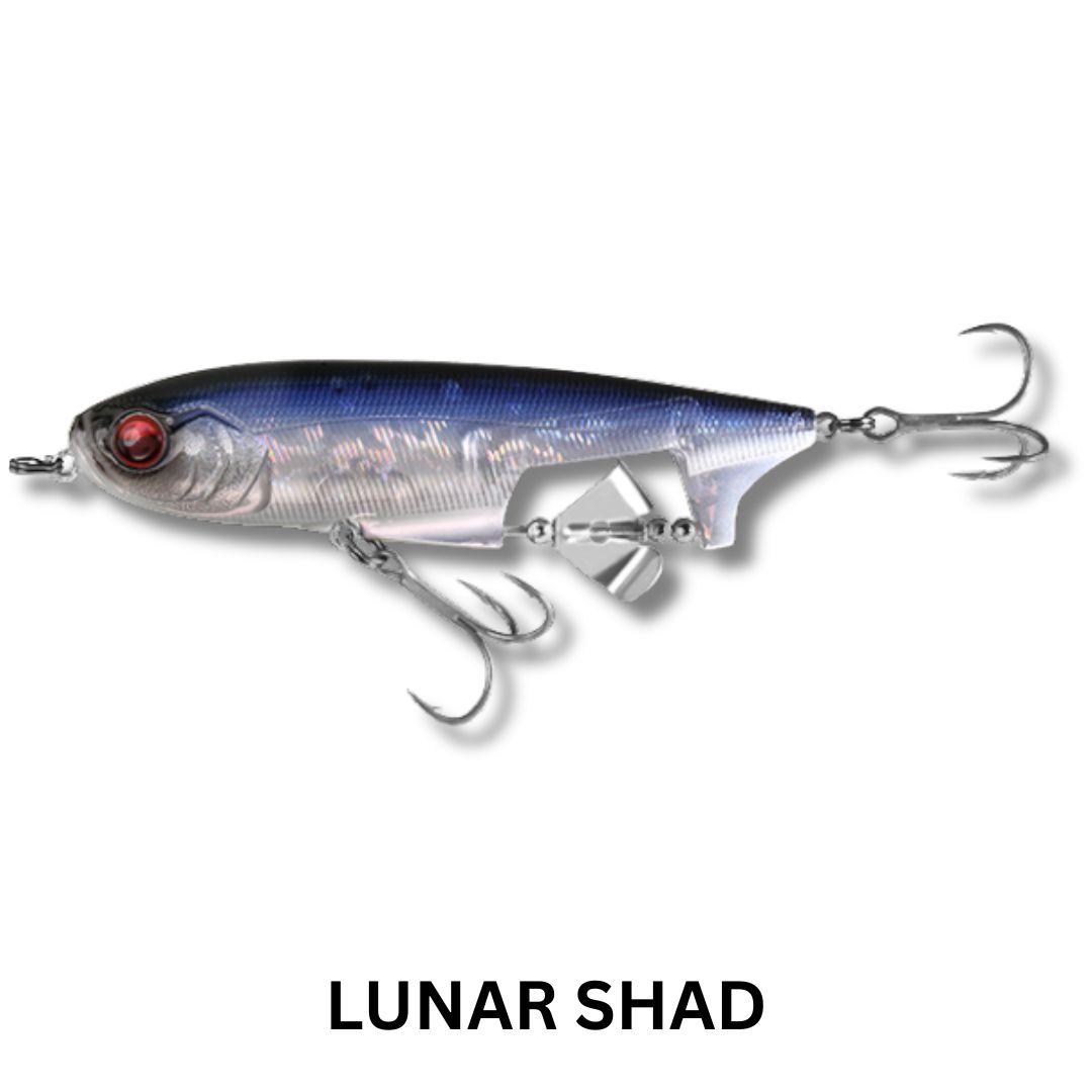 Blurring the lines between several varities of lures, the Spin Walker brings a unique flare to the world of topwater walking baits. The Spin Walker effectively combines a pencil and a buzzbait for a glorious surface disturbance that will surely trigger epic strikes. This lure features a bottom positioned prop and clacker that give off a loud sputter when the bait moves. Fish it on a straight retrieve for a large wake and enticing buzzing action, or a twitch and pause retrieve will give you a brilliant combination of propeller buzz and walk-the-dog action. Equipped with HD Holographic Eyes, Ultra HD Paint Finishes and VMC Treble Hooks – this lure harnesess the power of two types of topwater lures in one for maximum performance.