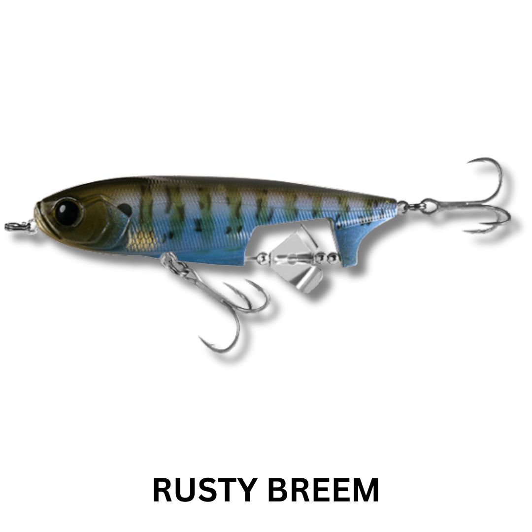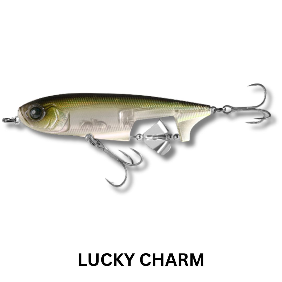 Blurring the lines between several varities of lures, the Spin Walker brings a unique flare to the world of topwater walking baits. The Spin Walker effectively combines a pencil and a buzzbait for a glorious surface disturbance that will surely trigger epic strikes. This lure features a bottom positioned prop and clacker that give off a loud sputter when the bait moves. Fish it on a straight retrieve for a large wake and enticing buzzing action, or a twitch and pause retrieve will give you a brilliant combination of propeller buzz and walk-the-dog action. Equipped with HD Holographic Eyes, Ultra HD Paint Finishes and VMC Treble Hooks – this lure harnesess the power of two types of topwater lures in one for maximum performance.