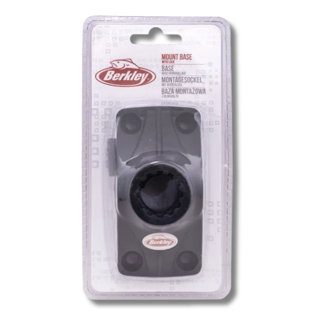 The basis for most Berkley boating accessories, which can be screwed on hard flat surfaces or attached to inflatable PVC or Hypalon boats, using the Berkley Glue-on Pad. Features a spring-loaded locking mechanism. Material: fiberglass reinforced nylon.