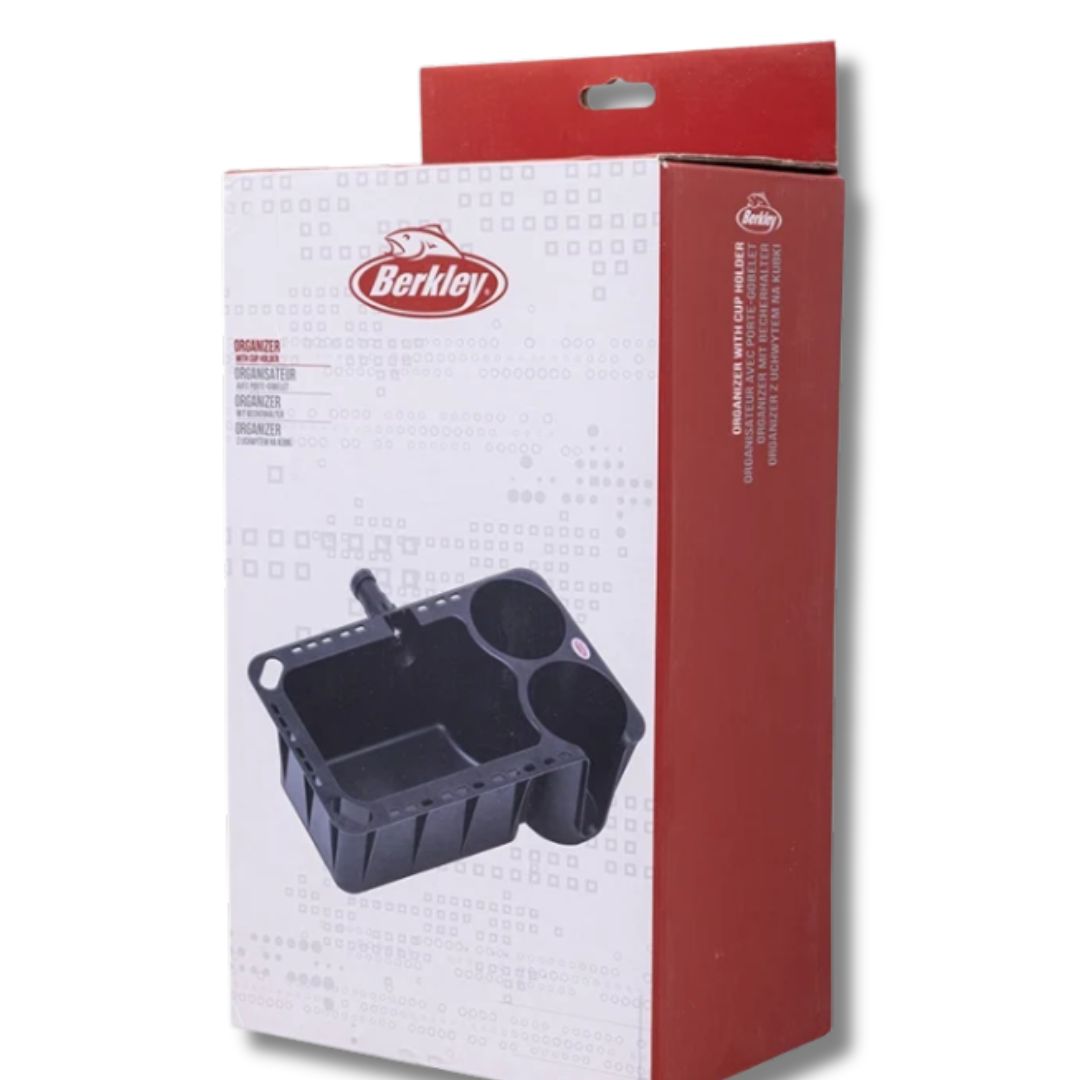 Perfect storage for a cup, drink bottle, car keys, mobile phone or any other small valuable item that you want to keep in reach while fishing from your boat. Supplied with a post that can either be attached to the bottom or the side of the container, depending on how and where you want this organizer in your boat. No less than 25 holes on the edge fur hanging lures. There are also two larger holes that are ideal for fishing pliers. Has tiny drainage holes at the bottom.