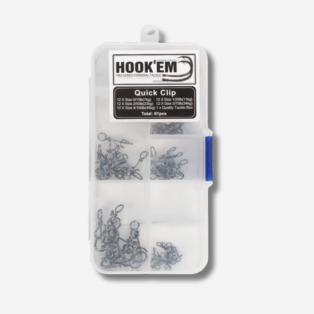 Hook'em Quick Clips are a great solution for when you regularly change out your rig or lure. Available in 6 size options and finished in a black nickle coating.