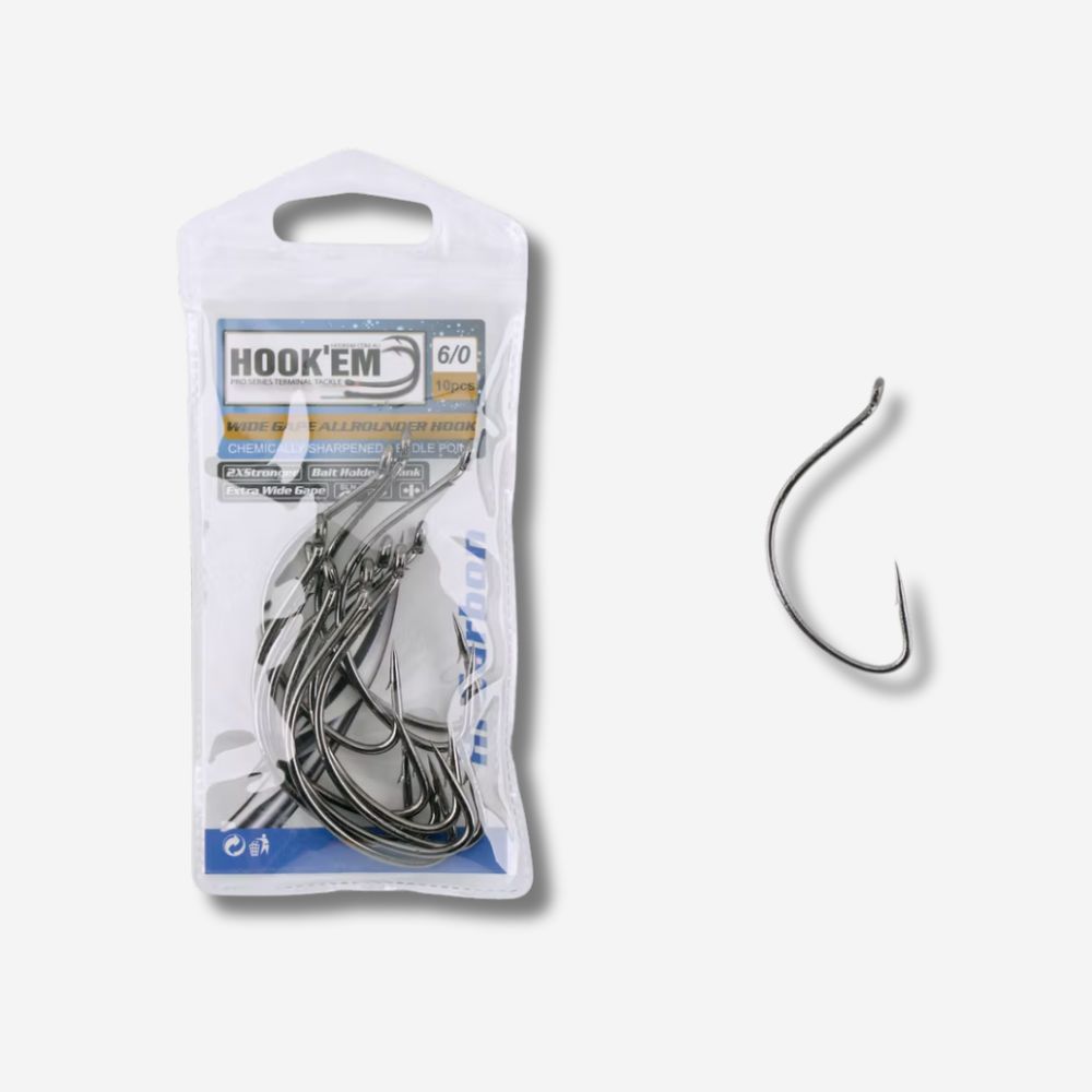 Hook'em Wide Gape Hooks are a great allrounder best suited for bait fishers. Load up your bait and let the fish do the rest.