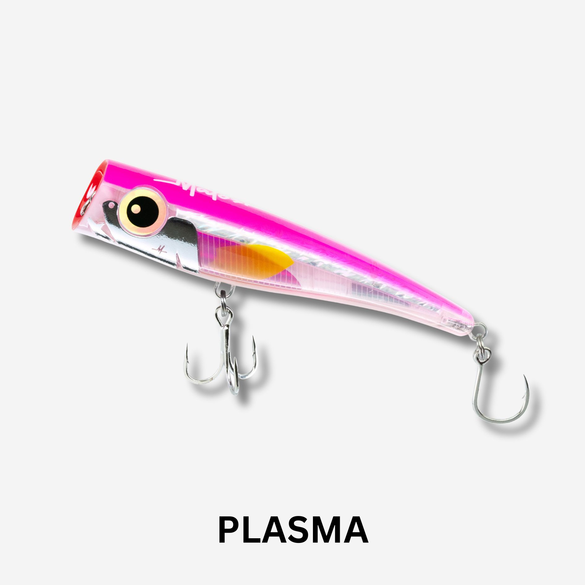 The Talo is a long-casting, tail-weighted diving popper built to provoke big predators with an aggressive surface presence. It forces air down just beneath the surface, creating a dense bubble trail and wide, wobbling swim with every sweep. It’s slow rise adds a deadly pause — let it surface before sweeping again. Burn it for an “S”-shaped swim, sweep for stickbait action, or mix in pops and pauses to trigger strikes. Versatile and tough, with dual-layer ABS, stainless steel through-wire, and 5X strong BKK hooks, the Talo is ready to fish hard straight out of the box.