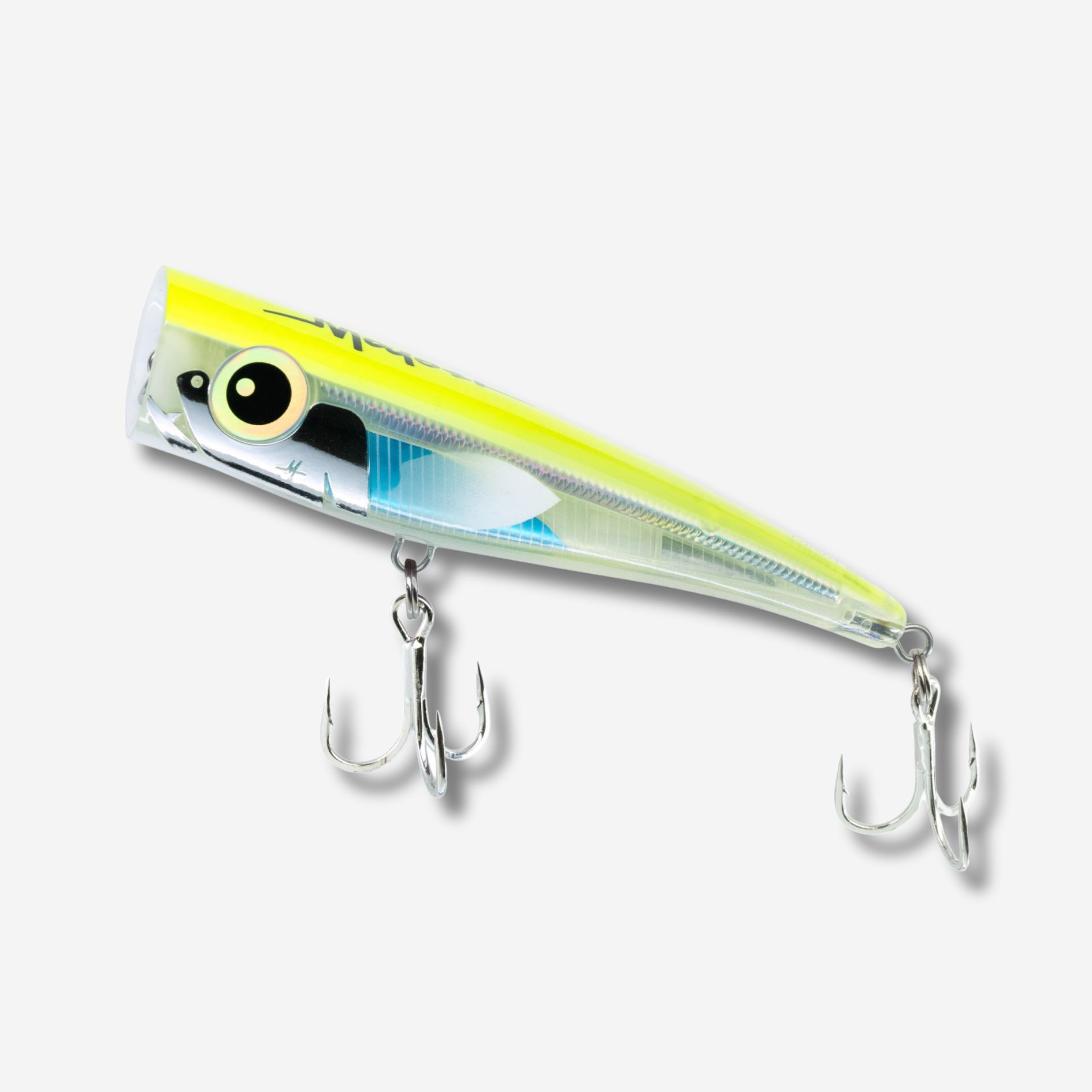 The Tyrant is a long-casting surface popper that delivers a huge impact for it’s size and weight. A heavy stab produces a deep cracking sound and explosive splash and it’s asymmetrical shape, low center of gravity, and tail-weighted design make it easy to cast long distances and work all day with minimal fatigue.