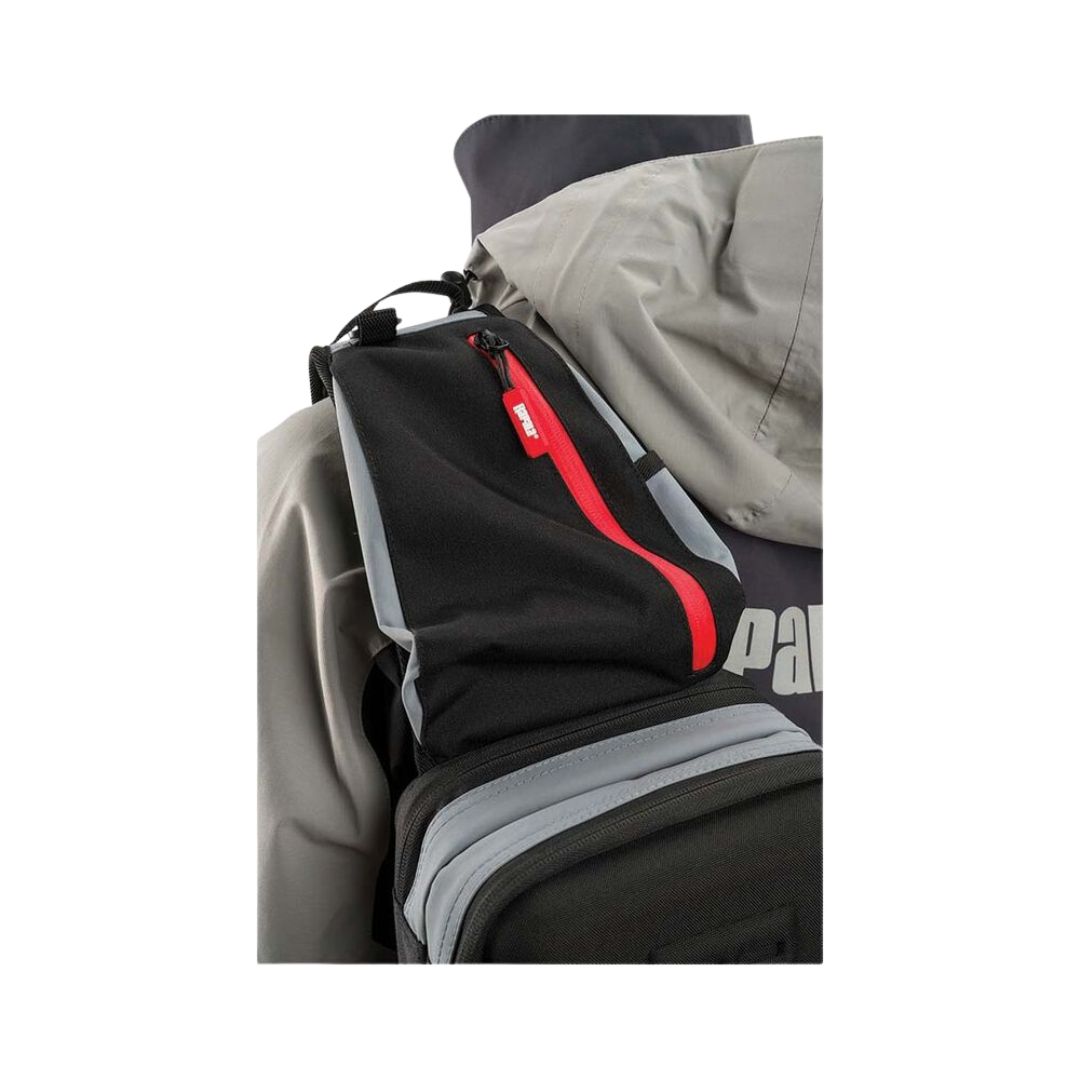 More space without losing quality, the CountDown Sling Bag Pro. Featuring: 3D mesh ventilating strap support, 2-main compartments with double pullers, open as a tray for changing lures etc, mesh zippered pocket in main compartment, accommodates two 3600 size tackle trays, and has rustproof zippers.