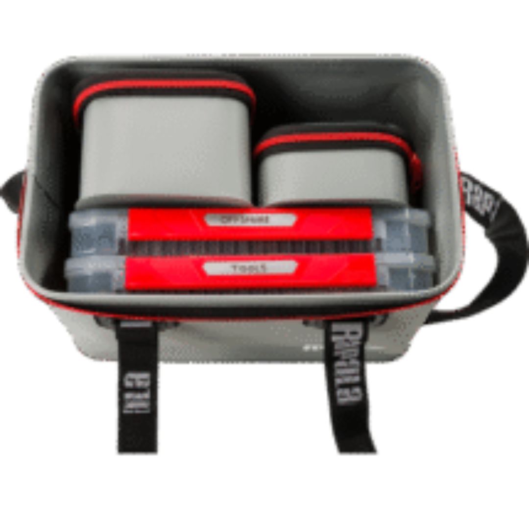 The Hydro Tackle Bag is built for the on-the-go angler. Featuring: 1mm body thickness, 1.5mm bottom thickness, 0.85mm lid thickness, collapsible design, detachable shoulder strap, rustproof reinforced zipper, holds five 3700 size tackle trays.