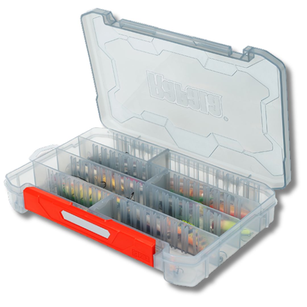 Store, organise, access – repeat. The Rapala Rapstack Tackle Tray is designed for keeping your tackle protected and in perfect order with heavy-duty construction and smart design. The Tackle Tray features rigid, customisable dividers for accommodating various-sized baits and accessories, while the Quick Latch System allows opening and closing the tray with an effortless single-hand motion. The stackable tray comes with integrated feet for vertical storage and re-writable labels for systematic storage. The UV-proof Rapala Tackle Tray is made from rigid plastic that’s resistant to both cold and heat, making sure your tackle is protected even in the most demanding conditions.