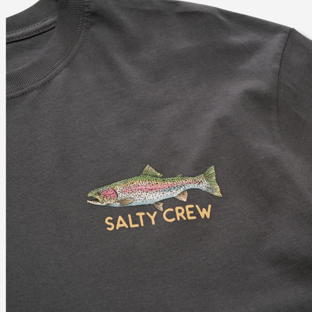Trout Mount Premium SS Tee in Coal is made from soft spun cotton jersey, 160gsm in weight. Finished with Salty Crew clamp label at sleeve hem. Digital printed front and back prints.