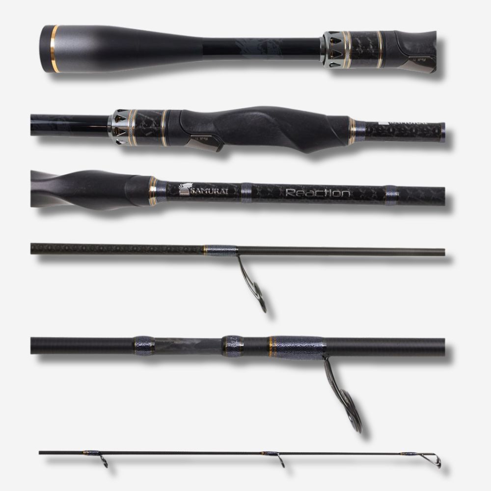 The Samurai Reaction Series spin rods are the brand’s flagship line, embodying Samurai’s dedication to cutting-edge design and technology. These rods are not only incredibly lightweight but also boast exceptional balance. At the heart of their performance is the signature Multi-Axial Carbon Matrix Laminate Construction blank. A high-strength T1100 layup featuring three strategically oriented layers of carbon fiber, optimised for load distribution, torsional resistance, and rapid blank recovery. Crafted with a unique recipe designed to deliver outstanding responsiveness. A unique six-axis over-wrap technology further enhances the rod by reducing linear twist, providing unmatched pulling power and superior casting accuracy.
