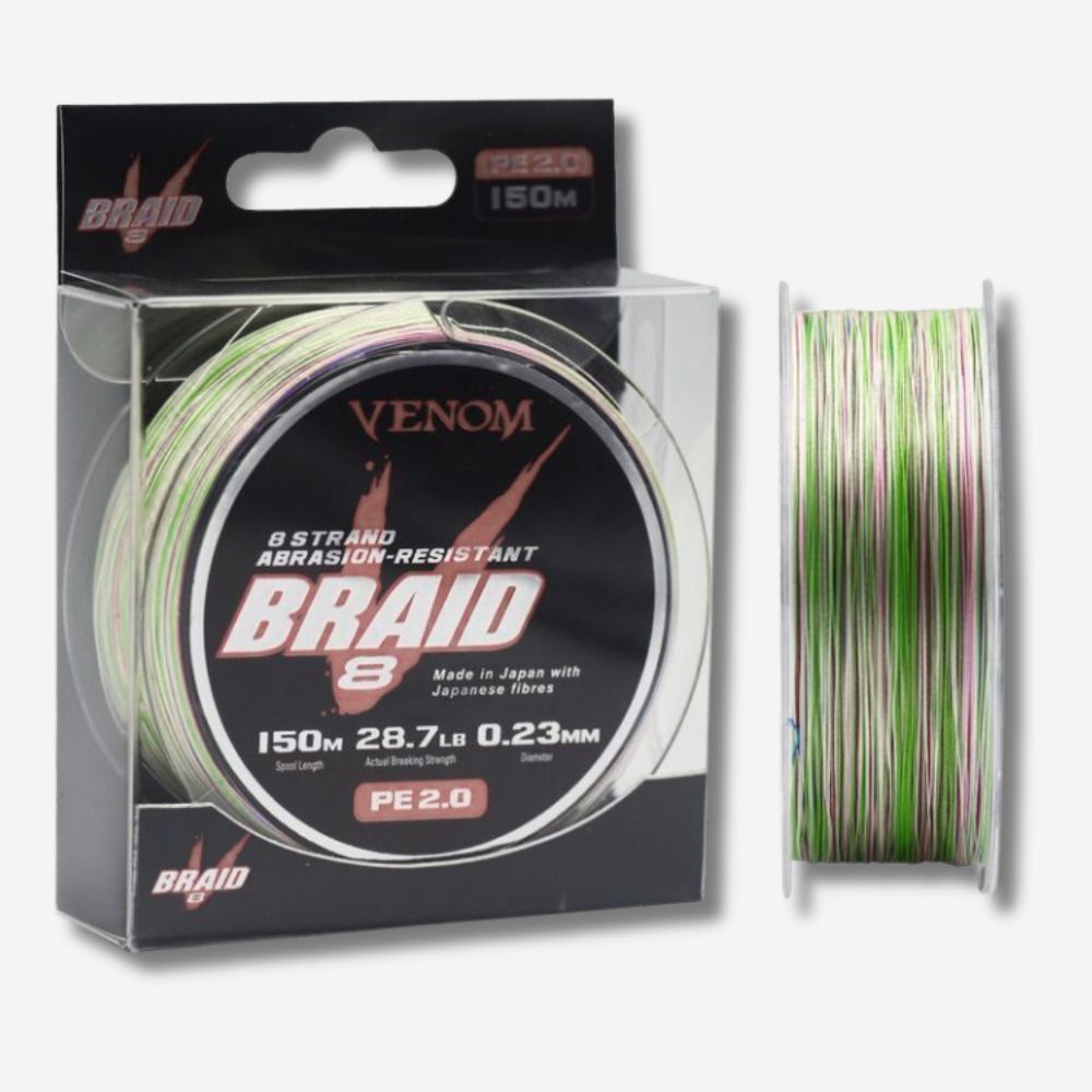 Venom V 8 Strand Braid Multi Colour 150m delivers superior strength and sensitivity for serious anglers. The advanced 8-strand construction provides exceptional durability and reduced stretch, giving you direct contact with every bite. Its vibrant multi-colour design aids in line visibility and depth tracking, while the 150m spool offers plenty of capacity for extended sessions. Built to handle demanding conditions, this premium braid cuts through water with minimal resistance, ensuring faster hook sets and improved casting distance. Perfect for targeting everything from barramundi to bream with confidence.